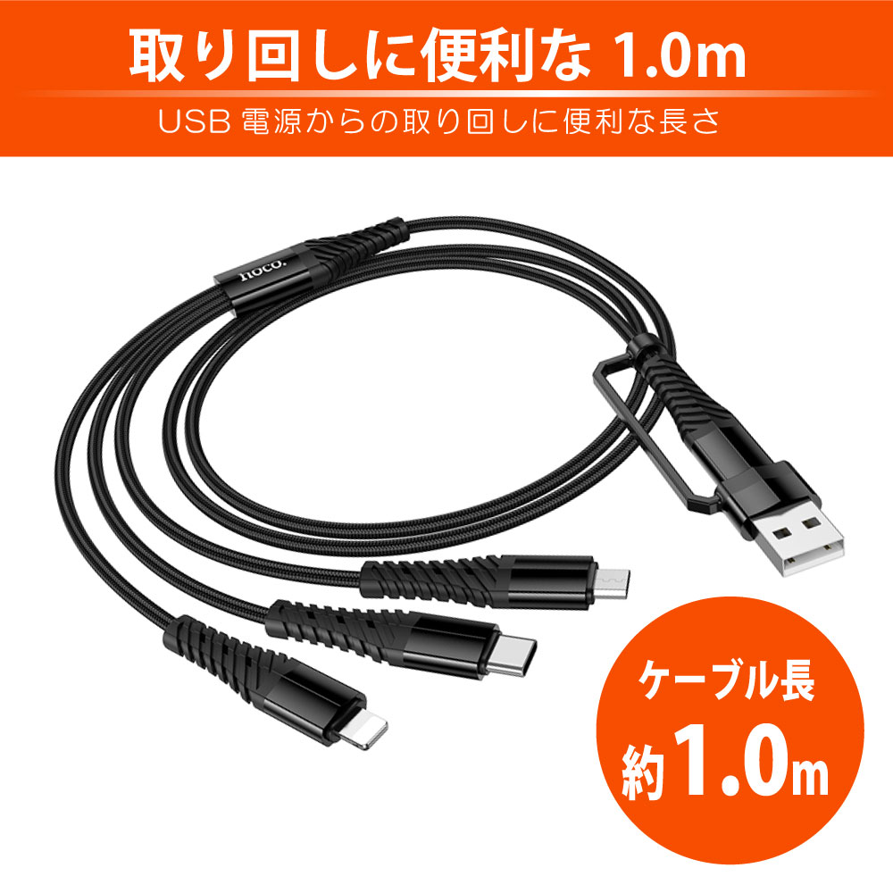 hoco X123 6in1ケーブル X123-ACMCL-BK iOS/microUSB/USB-C同時充電対応