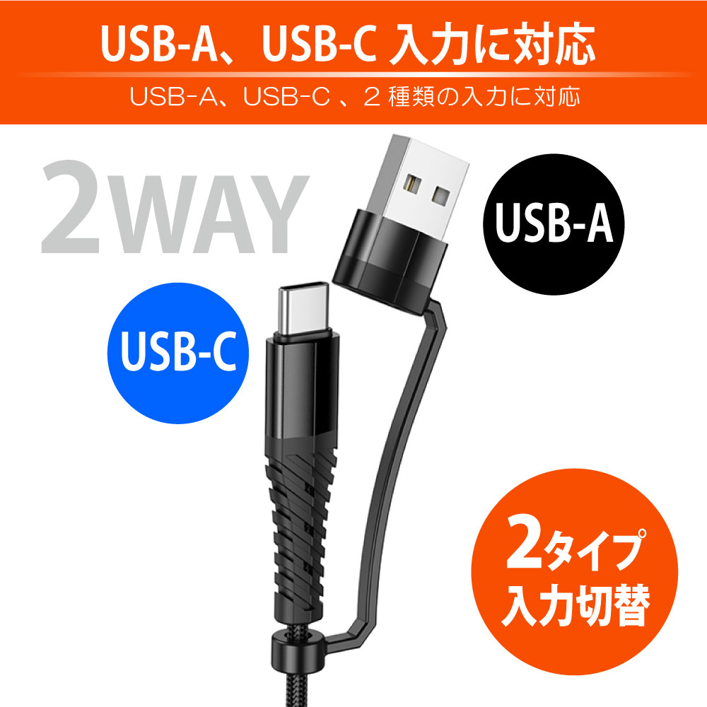 USB-A、USB-Cの2種類の入力に対応しており、USB電源を選びません。