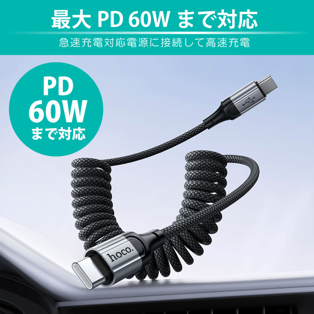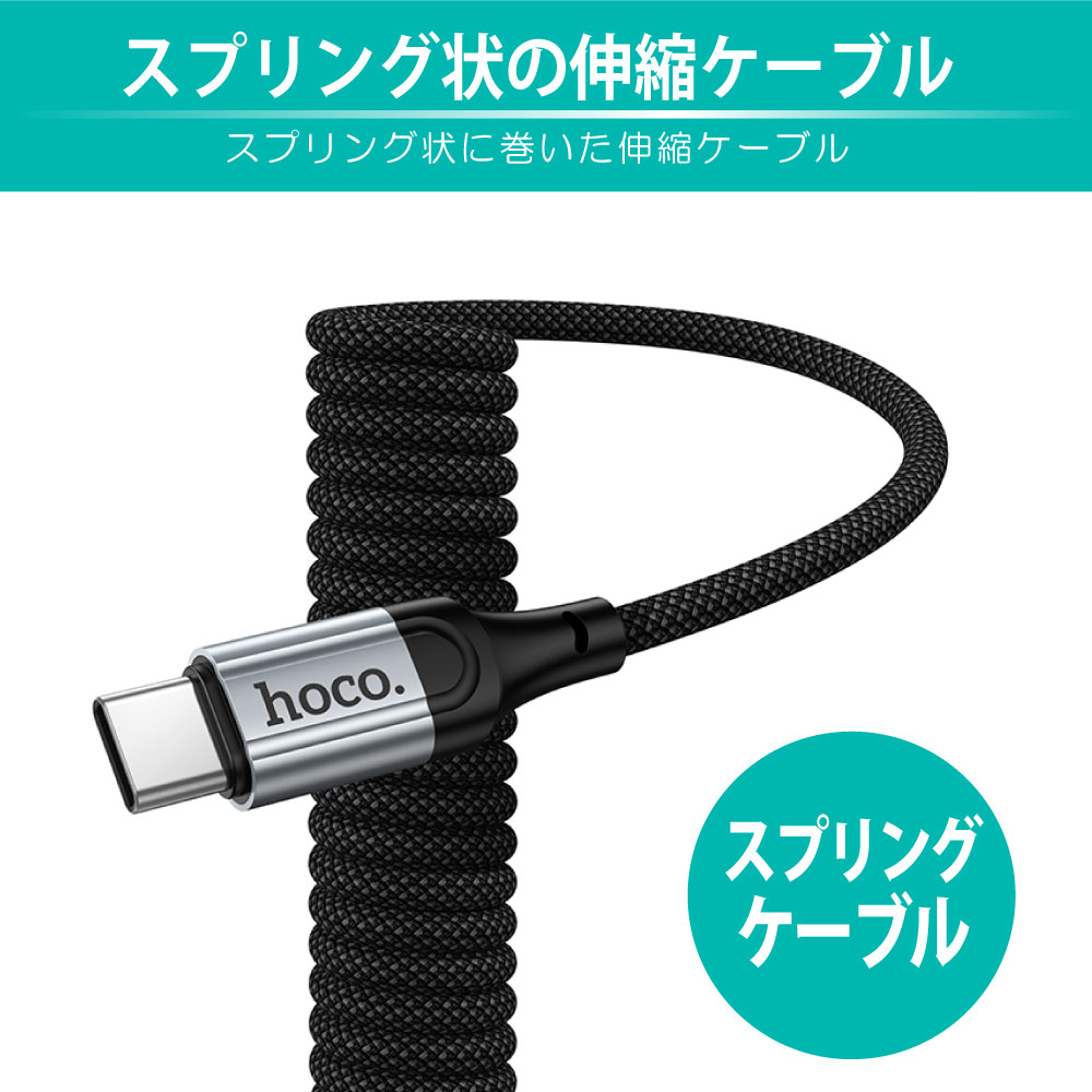 hoco X121 PD60W スプリングケーブル X121-CC-BK 必要な長さに伸ばせるカールコードを採用