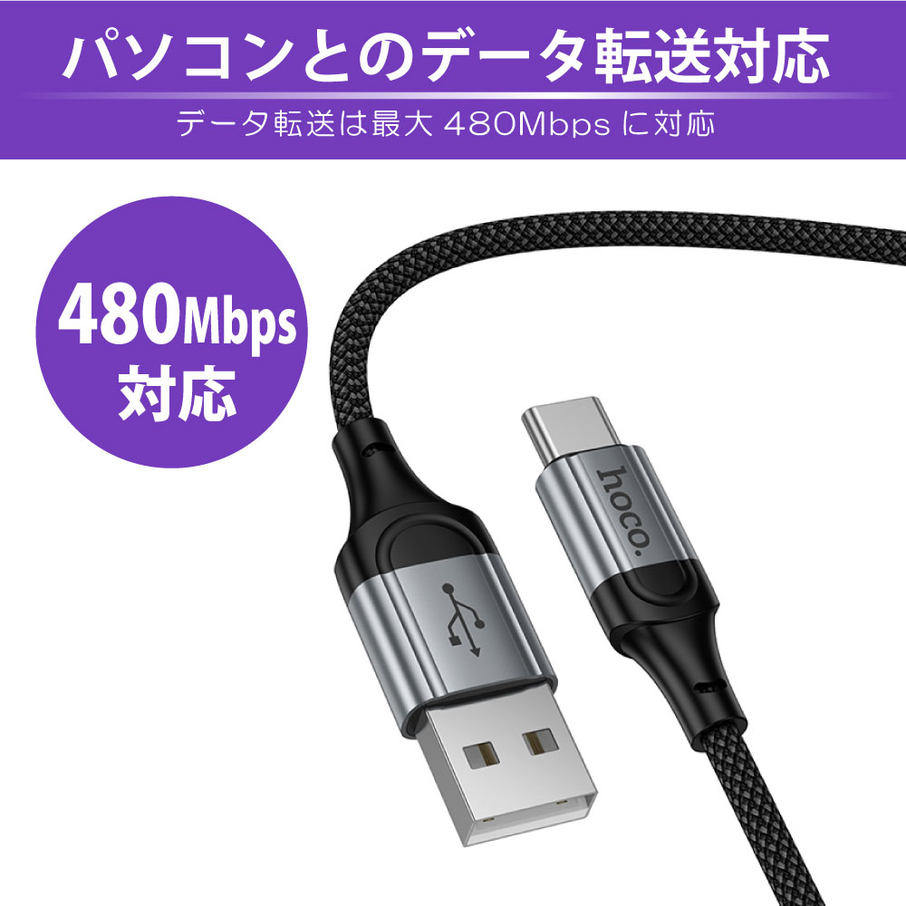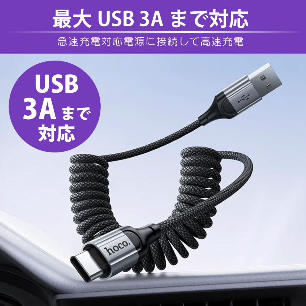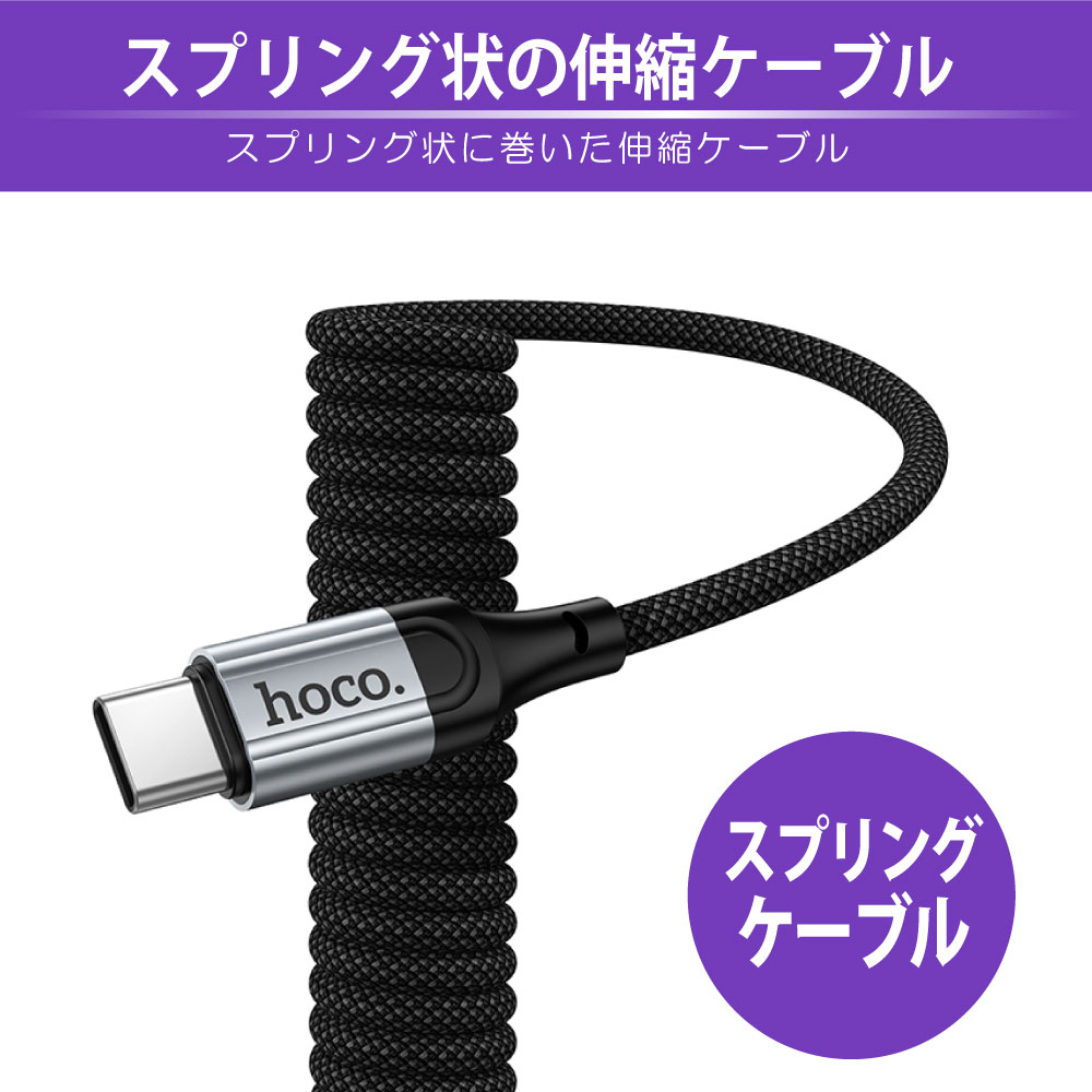 hoco X121 Type-C スプリングケーブル X121-AC-BK 必要な長さに伸ばせるカールコードを採用