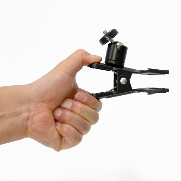 スマホやデジタルカメラを装着し、クリップでいろいろな物に取り付けられるカメラアタッチメントです。