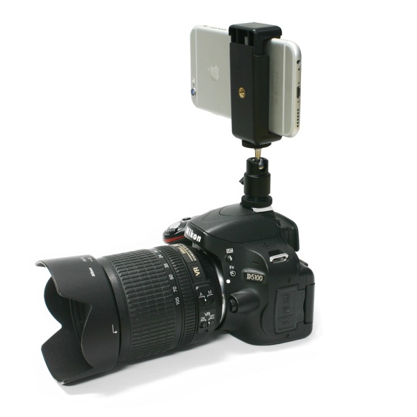 別売のスマホホルダーと組み合わせることで、一眼レフにスマホをマウントしての同時撮影も可能になります。