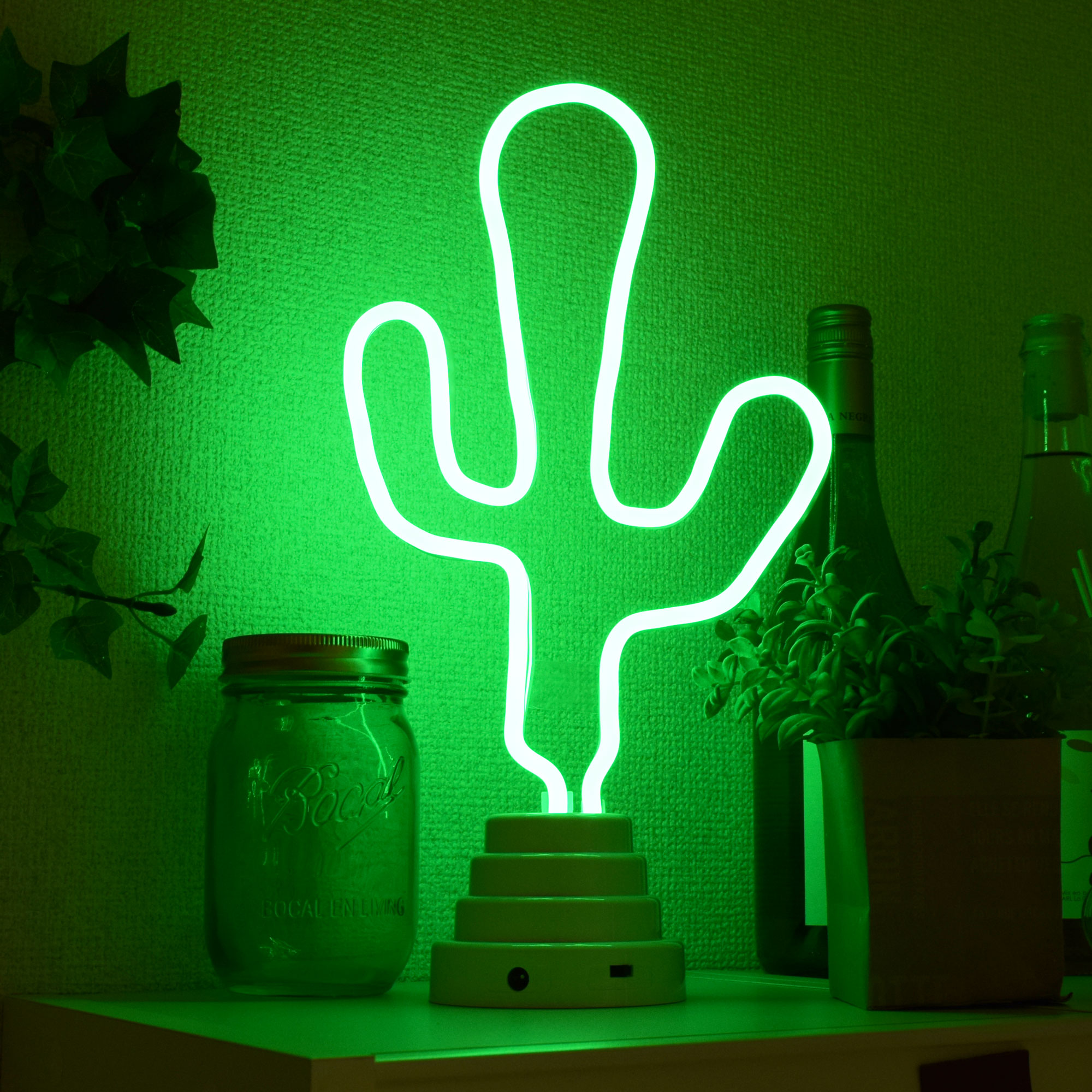 電源の無い場所でも点灯できる「電池ボックス」と、曲げて作った形を立ててディスプレイできる「ベース」をご用意。