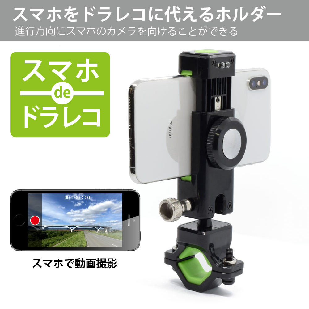 スマホをバイク・自転車のハンドル等のパイプに固定して撮影が可能なクランプ式ホルダーです。