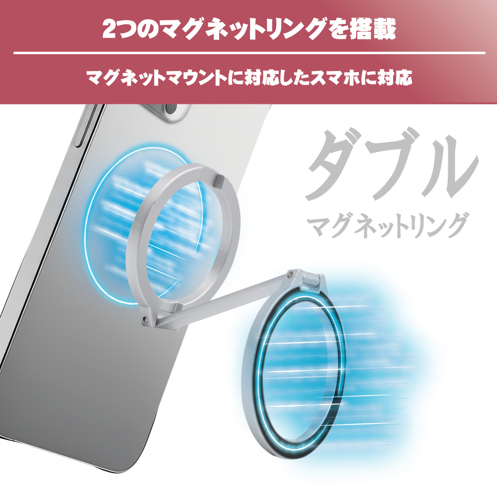 マグネットマウント対応スマホに利用できるリングを両サイドに搭載しています。