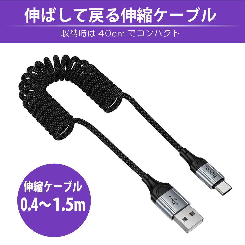 hoco X121 Type-C スプリングケーブル X121-AC-BK 必要な長さに伸ばせるカールコードを採用