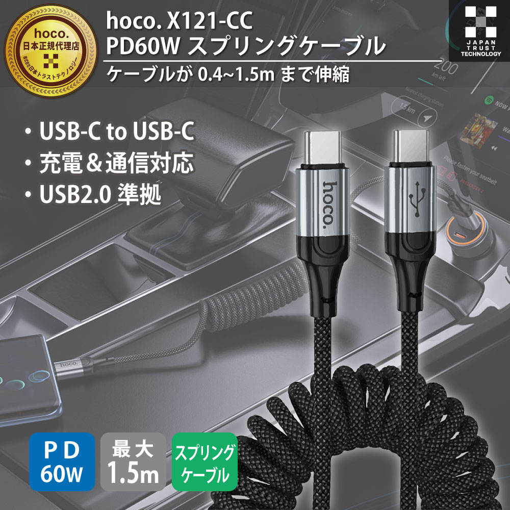 hoco X121 PD60W スプリングケーブル X121-CC-BK 必要な長さに伸ばせるカールコードを採用